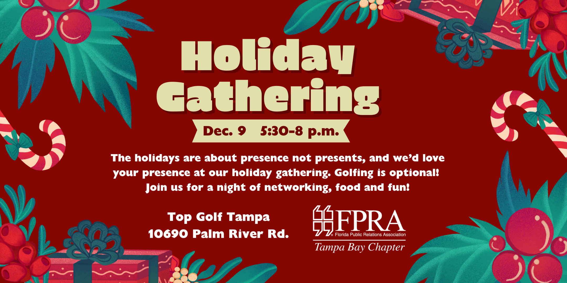 Join us for a fun and casual evening with friends at our holiday mixer. This year, we’ll gather at Top Golf Tampa Tuesday, Dec. 9, from 5:30 to 8 p.m. Tickets are $40 and include networking, dinner and golf. Golfing is optional. Nonmembers, friends and family are also welcome at this event. Ticket sales end Monday, Dec. 1 at 5 p.m. so register today and don’t delay!